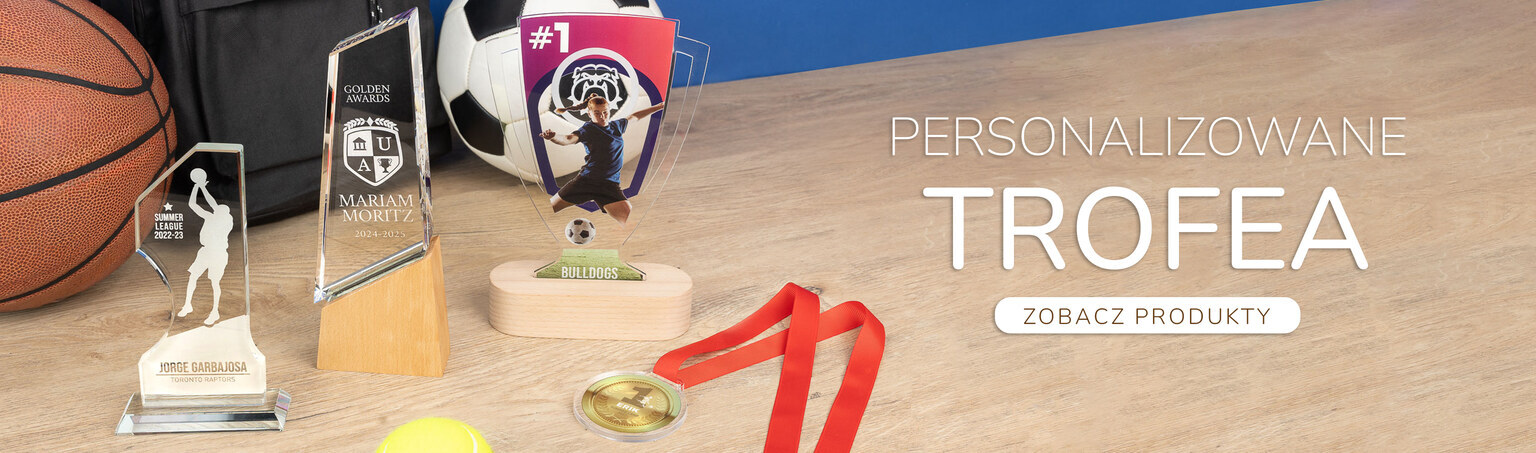 Nasz katalog jest szeroki i zróżnicowany: od breloków, kubków, puzzli, koców, ręczników, etui na telefon, gier planszowych, trofeów, obrazów na płótnie, poduszek czy piłek sportowych, po wiele innych produktów. Możesz zaprojektować dowolny produkt od podstaw lub wybrać spośród tysięcy personalizowanych wzorów i szablonów tematycznych, które możesz dostosować za pomocą własnych zdjęć, tekstów lub ilustracji na ważne okazje (Walentynki, Dzień Ojca, Dzień Matki, Boże Narodzenie, urodziny, rocznice, wydarzenia, śluby), a także prezenty dla mężczyzn, kobiet, dzieci lub osób w każdym wieku oraz kategorie według zainteresowań, hobby czy zawodów.